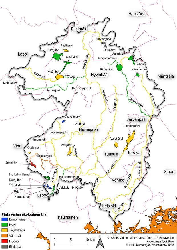 Valuma-alueen kunnat ovat Helsinki, Vantaa, Tuusula, Nurmijärvi, Hyvinkää, Riihimäki, Hausjärvi, Loppi, Mäntsälä, Vihti, Järvenpää, Kerava, Sipoo ja Espoo.